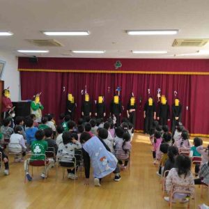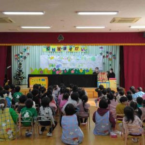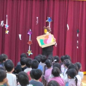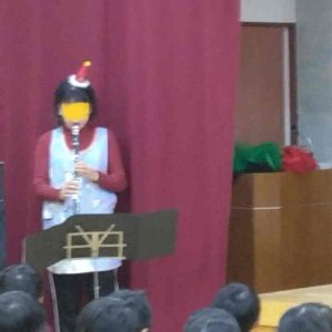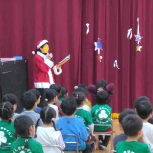 最初は、M先生とY先生からクラリネットとピアノで「星に願いを」の音楽のプレゼント。初めて聞く子も多かったと思いますが、素敵な音色はきっと心に残ったことでしょう!