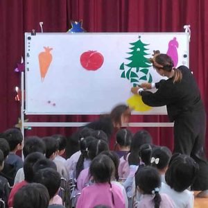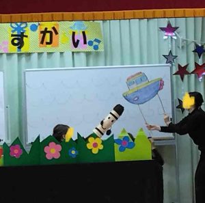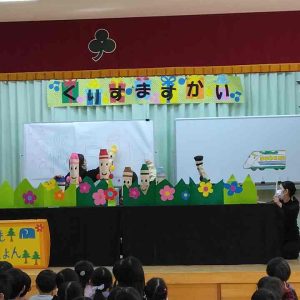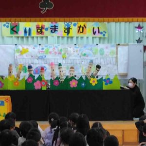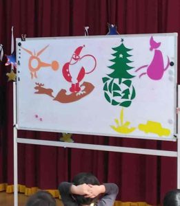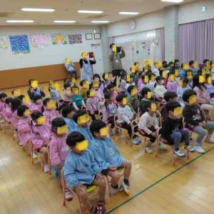 その後、PTAの皆さんから、「クレヨン君のたちの」動く紙芝居のお話でした。