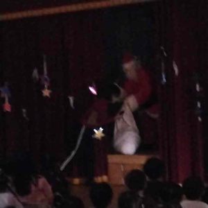 リズム室が暗くなって、いよいよサンタクロースの登場。 子供たちから「きたー!!!」という喜びの声が上がりました。