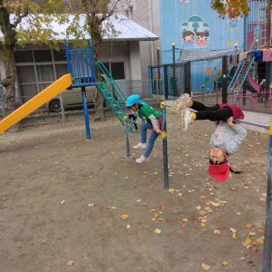 給食のあとは、子供たちは、今日も元気に外にでて・・・