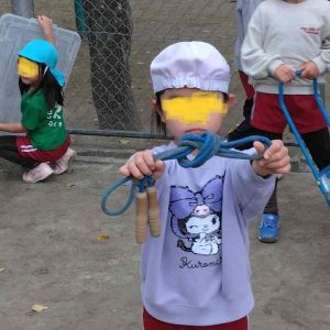 縄跳び遊びの後の、飛び縄の結び方も上手です。