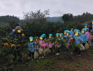 ★今年は、これまでの農園が利用できないということで、日置市の「東峯農園」にみかん狩りをお願いしました。きれいに整備された農園で、農園の方の説明なども丁寧でかつユニーク、みかんも美味しくて楽しいみかん狩りになりました。