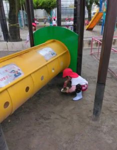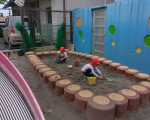 子供たちは、いろいろ発見して、砂遊びの素材にしています。