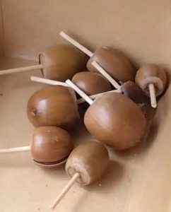 拾ってきたどんぐりでコマを作ったクラスもあったようです。