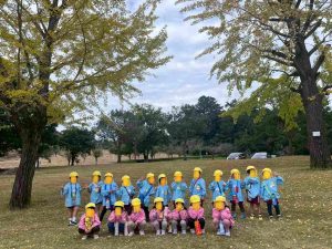 最後は、みんなで記念撮影・銀杏の葉が黄色く色づき初めていますね。