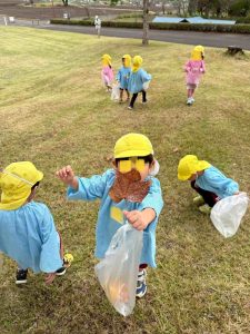 下の写真は、昨日10日のうさぎ組さんの「秋をさがそう!」・「どんぐり拾い」の一コマです。