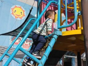 塔の2階部分へ、自分で階段を上っていきました。