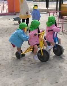 三輪車遊びの三人!仲良く遊んでいました。