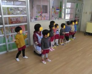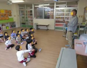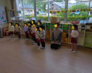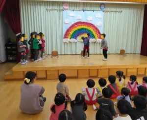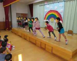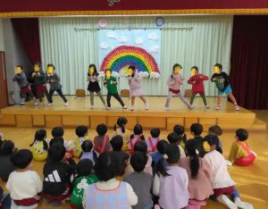 ★年長さんと、年中さんは合同練習!年長さんの発表を年中さんが見ているところです。