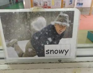 上のような写真を見せてもらい、寒そうな格好をしながら「スノーウィ!」 「スノーウィ!」「スノーウィ!」「スノーウィ!」と4~5回発音をして