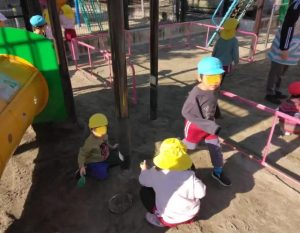 寒い朝ですが、日が差してくると、園庭は風もなく、楽しく遊べます。