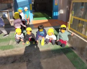 お片付けをして、数名お部屋に入る前のうさぎ組のお友達です。