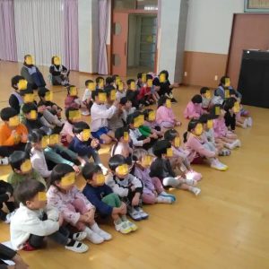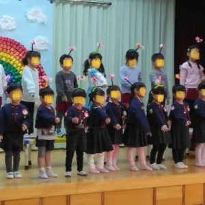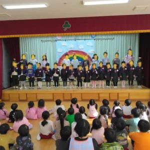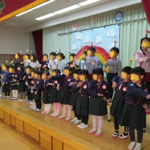 年長さんと年中さんが、一緒に、ありがとうの花の歌を歌っている所です。