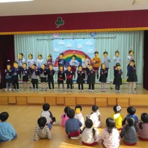 今日、降園バスの添乗でした。バスのなかで、年中・さくら組のお友達が「ありがとうの花」を手話のフリをつけながら、上手にしっかり歌ってくれました。明日、本番でもOKなできばえでした。