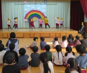 午前の部のお友達も、他の年齢の発表を真剣なまなざしで見学しています。鑑賞態度も立派です。