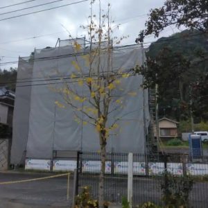 広場出口のいちょうは、先週末は黄葉から・・・葉を落として