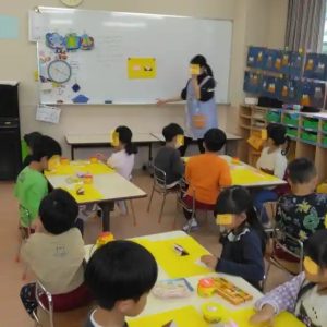 年中さんは、T先生の英語遊び。先日の、発表会の「In the morning」いかがでしたか。いろいろな言葉を知っていると感心したのでは?!