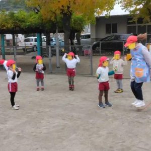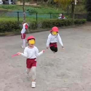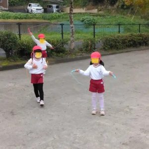 年中さんも体育遊びがありました。先生に教えてもらって、縄跳びの練習
