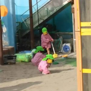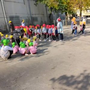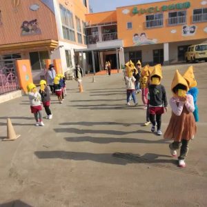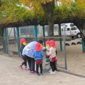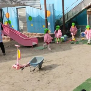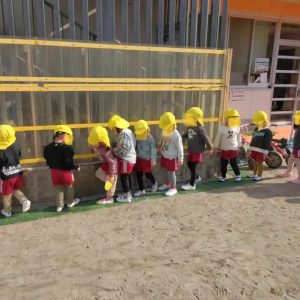 避難訓練の後は、りす組さんは、外遊びの時間でした。