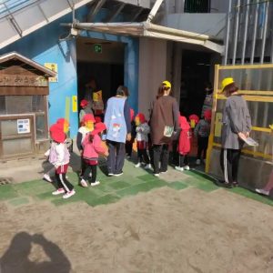 今日は、12月の避難訓練の日、火災を想定しての避難訓練をしました。