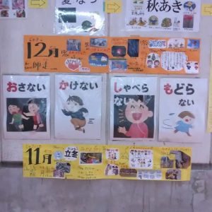 この「お・か・し・も」は、うさぎ組の向かいの壁面にも掲示しています。