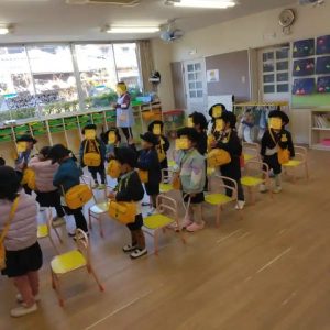みんなで、「あわてんぼうのサンタクロース」の歌を歌っていました。