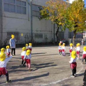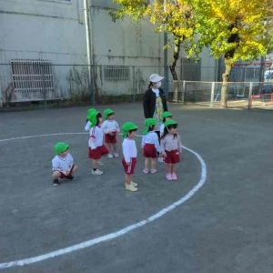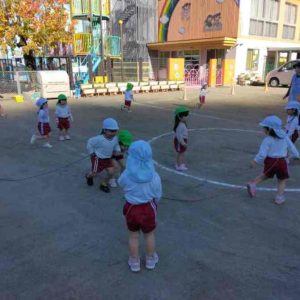 年少さんも体育遊び。この時間になると、日が差して運動をすると汗ばむ感じです。