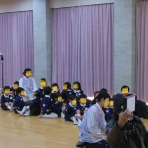 準備運動をしたあと、これからする運動の説明を聞いているところです。