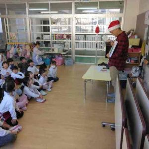 クリスマスにちなんだ話題で、興味津々に見て、英語遊びを楽しんでいました。