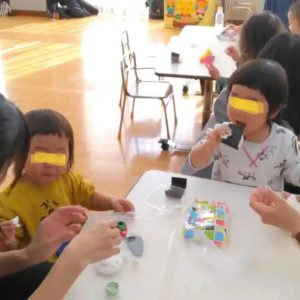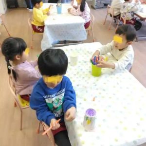 こちらは、うさぎ組さん・・・カップにマジックで絵を描いていました。