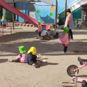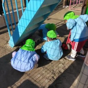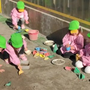 園庭では、りす組のお友達が砂遊びを楽しんでいました。