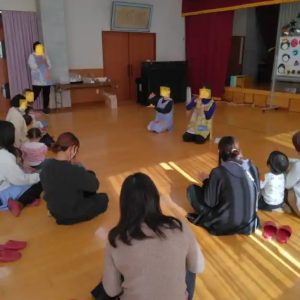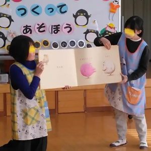 読み聞かせは、「おしくらまんじゅう」を題材にしたお話でした。