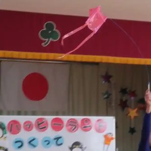 そのあと、お正月のあそびの一つ凧あげ・・・「凧」の歌をうたいながら・・・