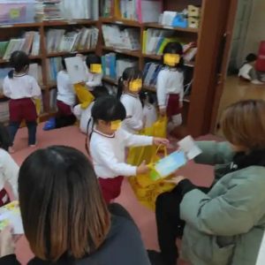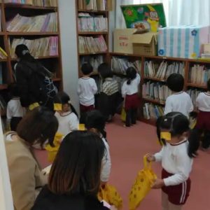 うさぎ組のお友達が貸し出し前に、挨拶をしているところです。