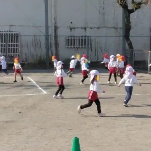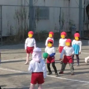 10時頃には、日も差してきて、りす組のお友達は、体育遊び。