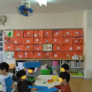 子供たちは、一つ一つ何を作るか考えながら、このように夢中になって活動しています。このような時、脳は活性化し脳内のシナプスが活性化するそうです。