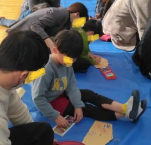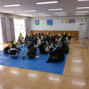 今日のメインの活動は2つ、①来年の抱負を絵馬のおふだに書く。②みんなの前で、発表する。の2つです。