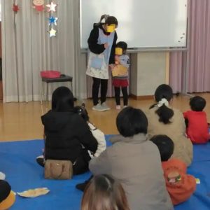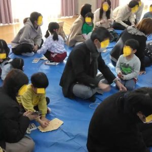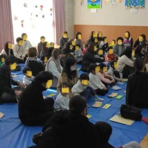 さくら組の保護者参観は、リズム室で、保護者も寄り添った形で行いました。