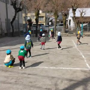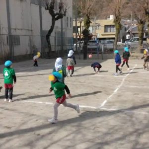 年長さんのドッジボール、投げるボールの威力がアップしたり、受け方も上手になっています。」