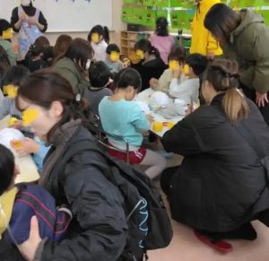 お父さん・お母さん方に手伝ってもらいながら