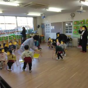 年少さんのクラスでは、椅子を丸く並べて・・・