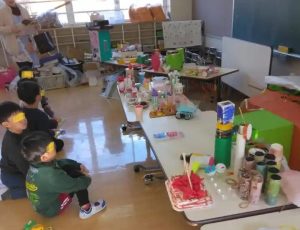 空気てっぽうの様なのの作り方の説明を聞いていました。