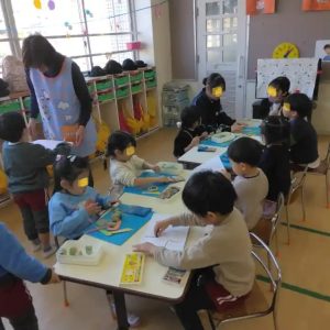 年長さんは、2月のお店屋さんごっこに向けて、出品物作成が始まっていました。