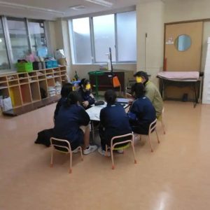 体調不良のお友達は、無理せず、幼稚園に残って、保育士の先生や中学生のお姉さんとお絵かきや粘土遊び、