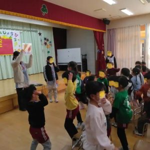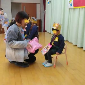 歌は、「鬼は外‼福は内」の歌を歌ってくれました。2番まで一人で歌えました。りっぱだなぁと思いました。昨日は、お家で、御家族で歌ったのかもしれませんね。