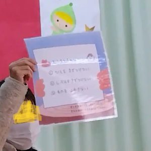 ① 相手を傷付けない。 ② 自分を傷付けない。 ③物を、投げたり壊したりしない。の3つのことです。どれも、大事なことですね。