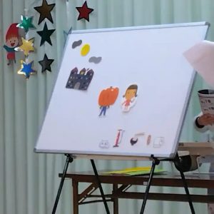 先生方からの出し物のプレゼントは、お化け屋敷探検の「ホワイトボードシアター」でした。
