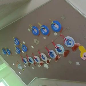 2階への階段の壁面には、うさぎ組の工作の作品が飾ってあります。