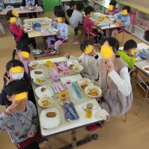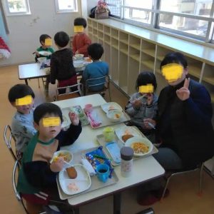 年中の誕生月のお友達の御家族は、給食の試食会に参加。