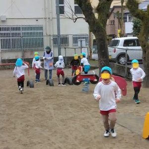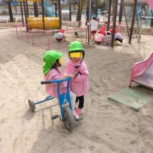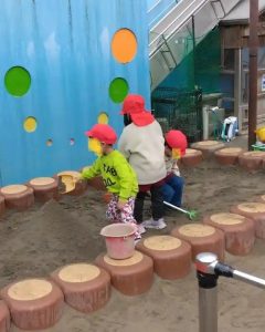 8時半ごろまでは、小雨交じりの天気でしたが、9時頃には雨も上がり、元気に外遊びをする子たちです。